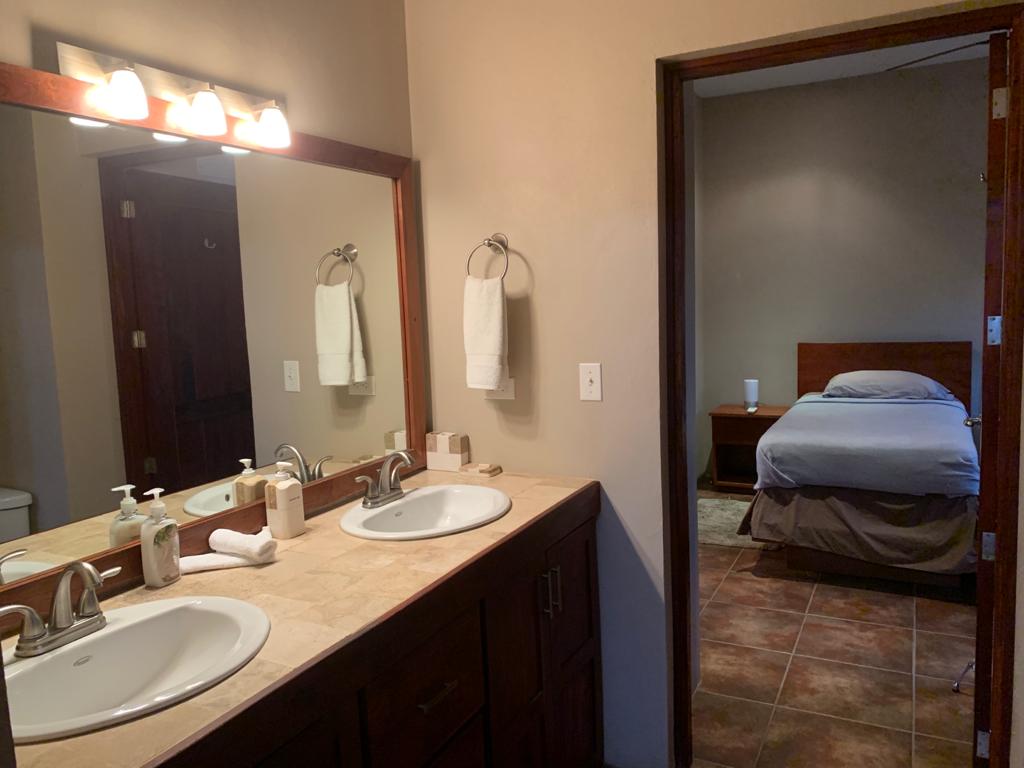 The upstairs office/loft has a futon that converts into a double bed and has its own bathroom and Ocean view patio. It could easily be converted into a 4th bedroom.